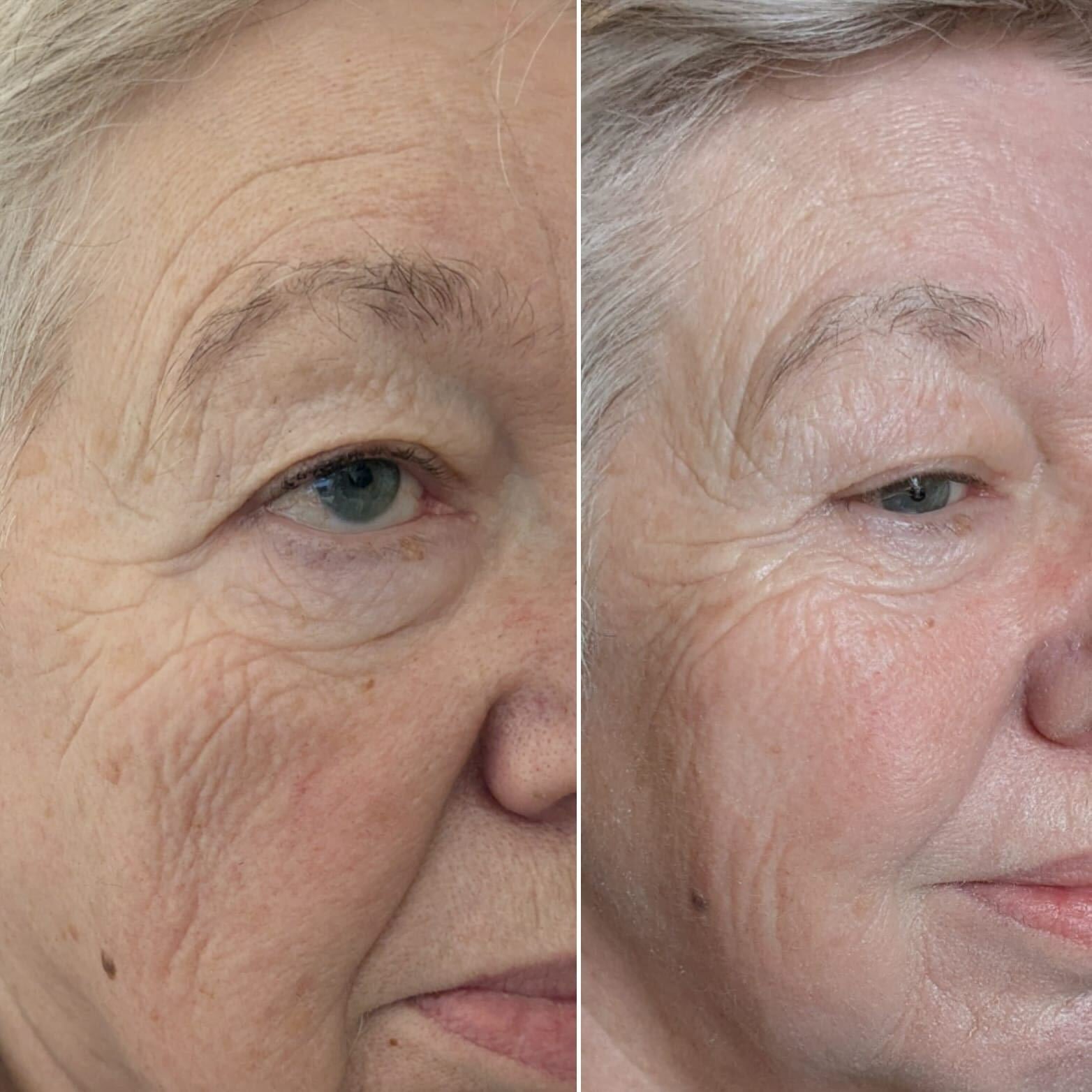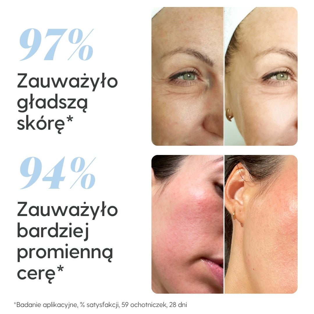 Widoczna redukcja drobnych zmarszczek i wczesnych oznak starzenia. Bardziej wyrównany koloryt skóry, widocznie mniej niedoskonałości.