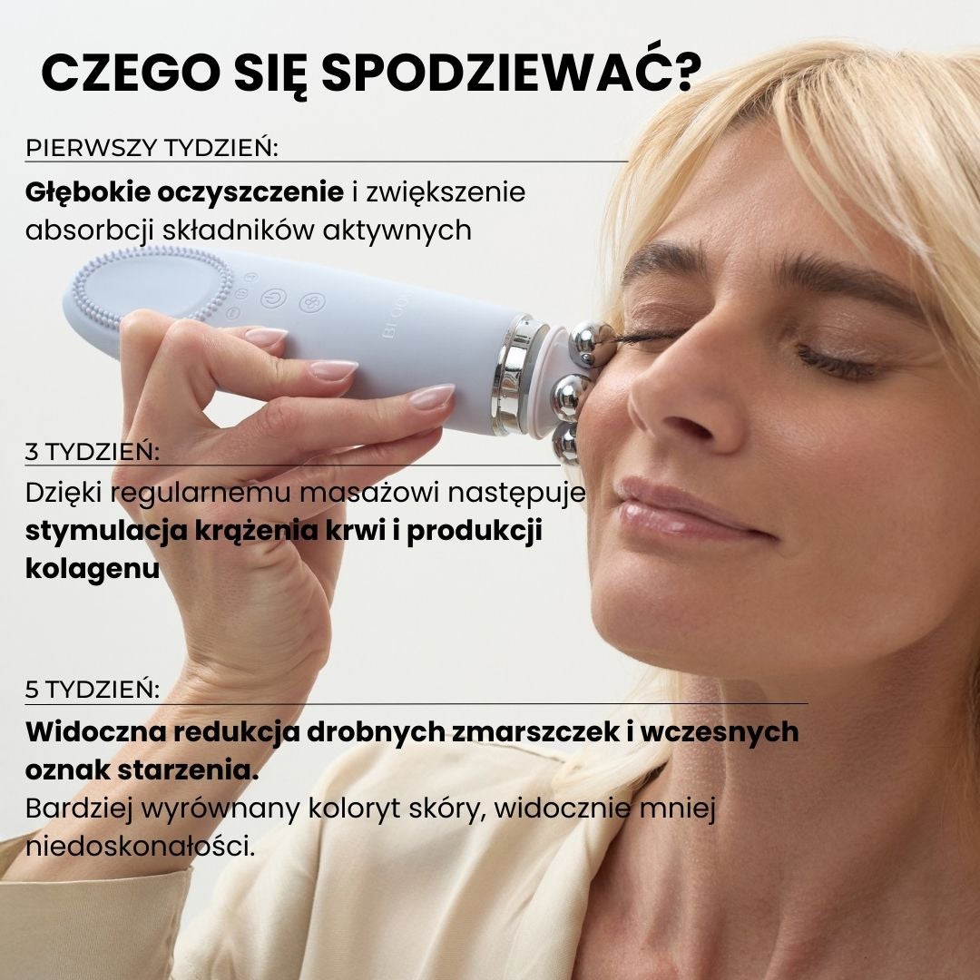 Regularne stosowanie głowicy masującej stymuluje krążenie krwi, co z kolei sprzyja lepszemu dotlenieniu i odżywieniu skóry. Efekt przekłada się na zdrowy, promienny wygląd cery.